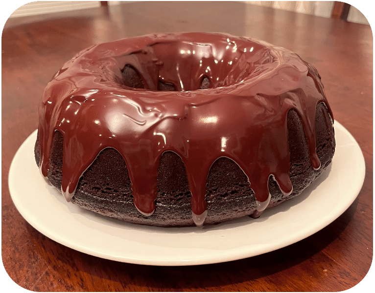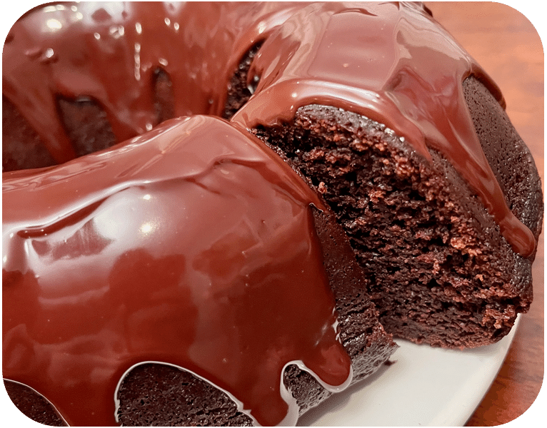 Chocolate bundt cake glazed with rich chocolate ganache