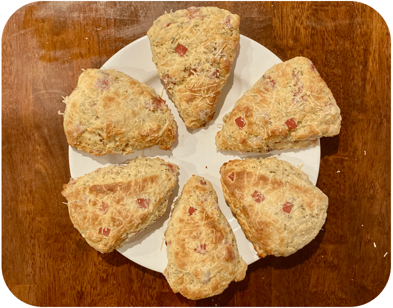 Buttery scones packed with fresh rosemary, thin sliced ham, and freshly grated Parmesan cheese