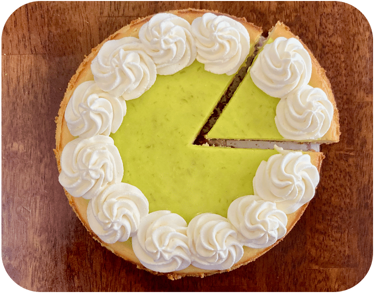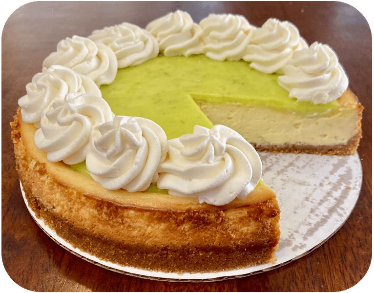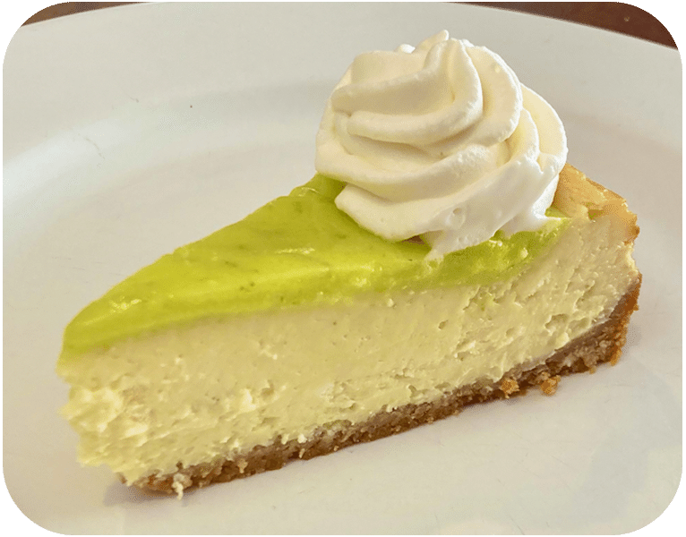 Tangy key lime cheesecake with graham cracker crust and lime curd topping