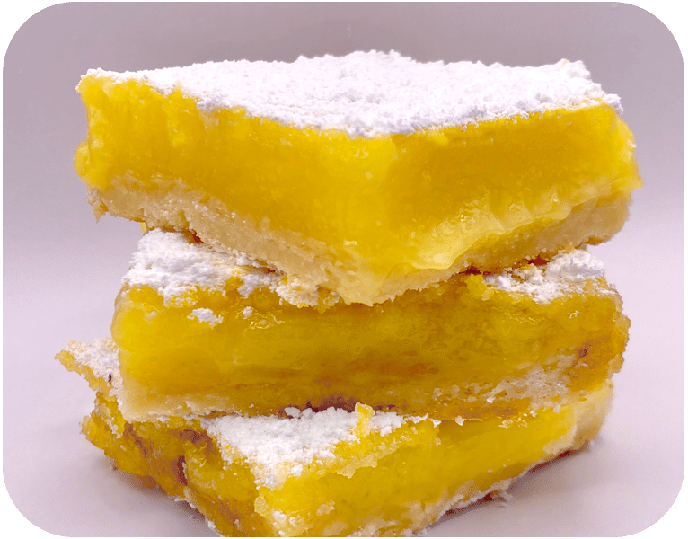 Classic lemon bars with a soft cookie crust and dusted with powdered sugar