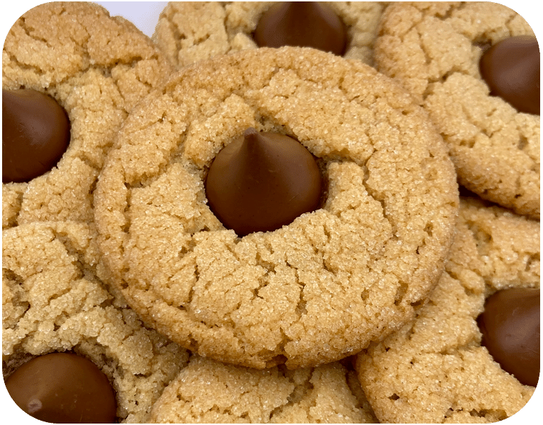 Soft and chewy peanut butter cookies, available with or without chocolate kisses