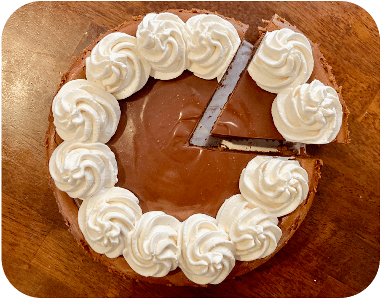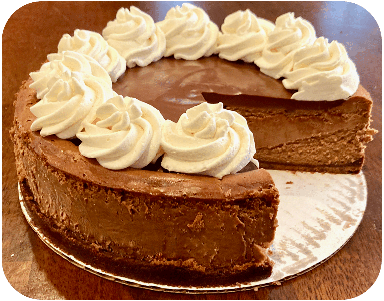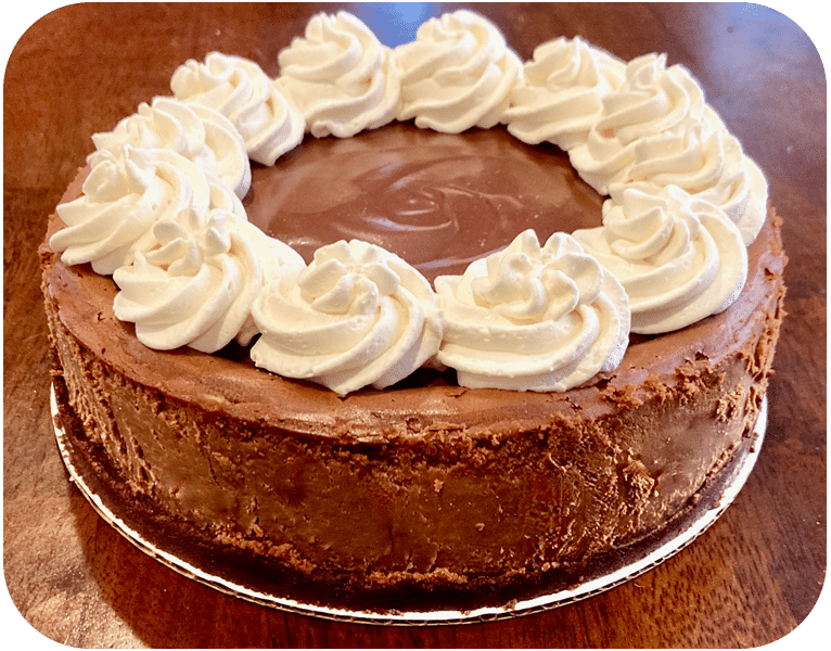 Rich chocolate cheesecake with chocolate cookie crust and smooth chocolate ganache topping